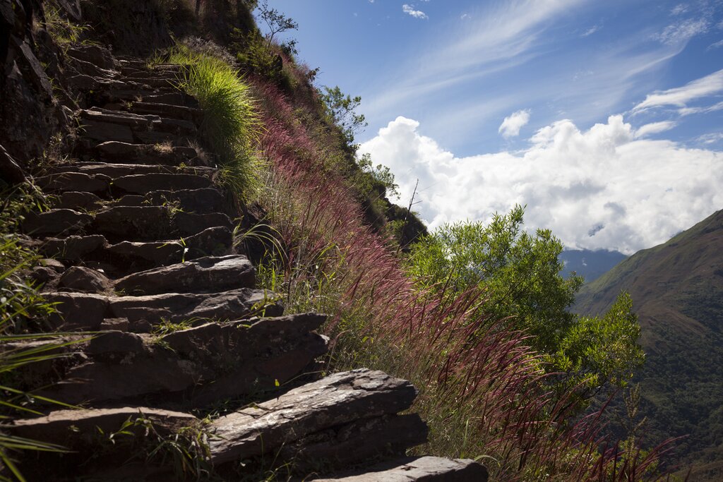 Enfilez vos chaussures de randonnée et préparez-vous à entamer un trek de quatre jours le long du Chemin de l’Inca (42 km), dont le point culminant est l’emblématique Machu Picchu. Transfert à Ollantaytambo tôt le matin, puis rencontre avec votre groupe au km 82, le début du sentier le long de la voie ferrée de Cusco à Aguas Calientes. Après vous être inscrit à la randonnée, suivez votre guide et vos porteurs pour traverser le Río Urubamba et commencer le trek. Le premier jour est plus facile que les autres, ce qui en fait un bon échauffement et vous donne le temps de vous acclimater à l’altitude.