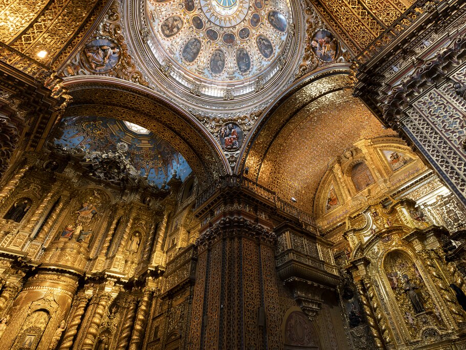 Après le petit-déjeuner, vous rencontrerez un guide local et embarquerez pour une visite privée à pied du centre colonial de Quito, afin de comprendre pourquoi il est inscrit au patrimoine mondial de l’UNESCO. Admirez les sculptures de pierre complexes de l’église baroque La Compañía et promenez-vous dans les cloîtres de l’Iglesia San Francisco du XVIe siècle. Terminez votre visite du centre historique par une promenade dans La Ronda, ancien sentier précolombien, aujourd’hui rue piétonne romantique remplie de cafés, de salles de concert et de boutiques éclectiques.