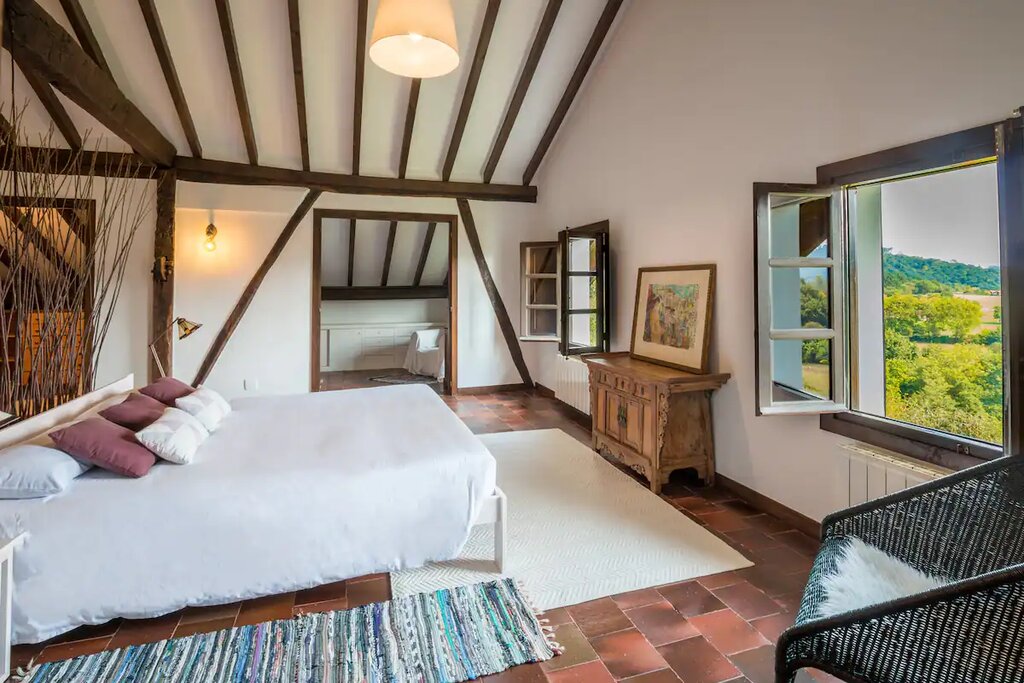 Située à 15 minutes de Bilbao et à proximité de plusieurs plages, la maison rurale Eguzkilore est une location de maison complète qui offre un séjour paisible et relaxant au milieu de la nature. La maison comprend six chambres doubles, chacune avec une salle de bains complète, pouvant accueillir jusqu’à 17 personnes. De nombreux équipements sont disponibles sur la propriété, notamment un terrain de football, un terrain de beach-volley, un terrain de basket-ball, un trampoline et une salle de jeux remplie de jeux de société, de ping-pong, de fléchettes et de machines d’arcade des années 80. Moyennant un supplément, vous pouvez prendre le petit-déjeuner et déguster des dîners et des barbecues préparés à la demande.