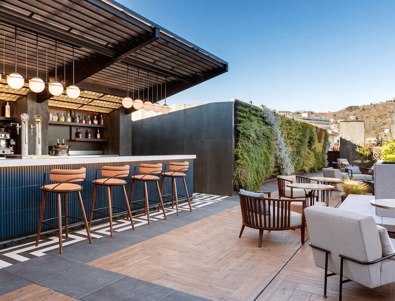 Les 137 chambres et suites élégantes de l’hôtel sont décorées avec des palettes de couleurs douces et offrent des équipements haut de gamme, de luxueuses salles de bains en marbre et une gamme d’options, telles que des unités familiales et une suite présidentielle avec une terrasse privée et un bain à remous. Le NKO Rooftop Bar offre un cadre magnifique avec des jardins verticaux, des foyers et des vues sur la ville, idéal pour siroter des cocktails créatifs ou du vin local. Bien que le quartier animé puisse entraîner un certain bruit de rue dans certaines chambres, les équipements, la nourriture et l’emplacement exceptionnels de l’hôtel compensent ce manque.