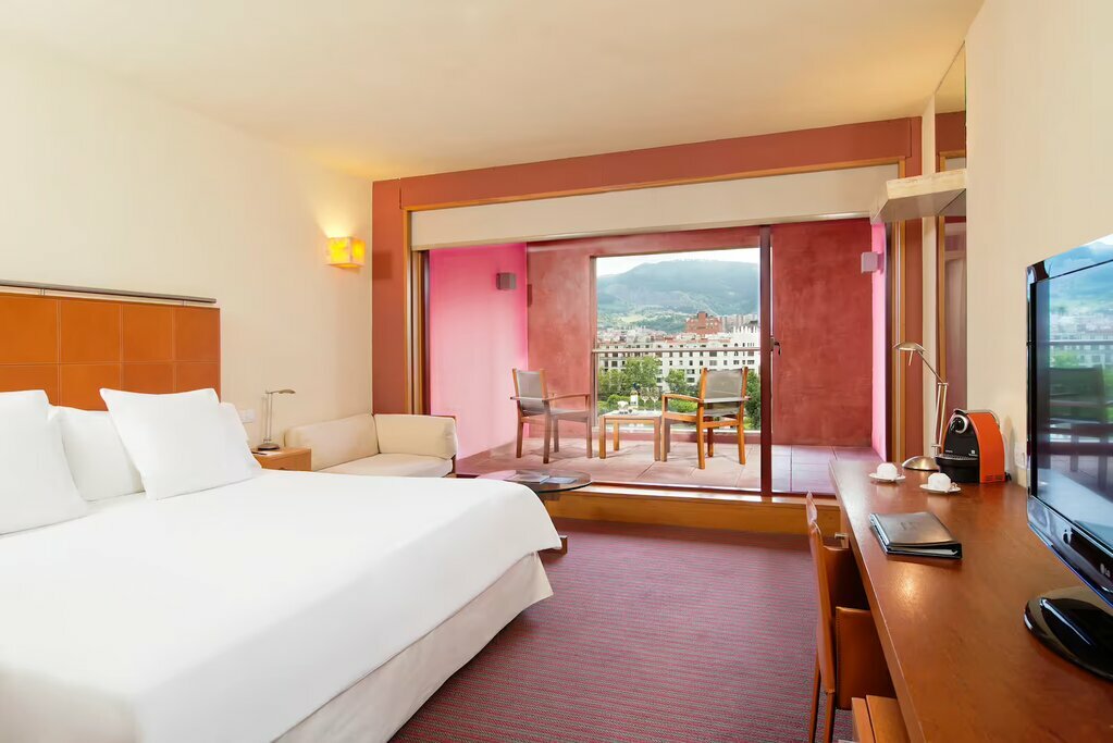 Le Meliá Bilbao est un hôtel de luxe à l’architecture avant-gardiste inspirée par le sculpteur basque Eduardo Chillida. Idéalement situé à proximité du musée Guggenheim et du fleuve Nervión, cet hôtel vous offre un goût authentique de la région grâce à ses remarquables options de restauration, notamment le restaurant Aizian qui sert une cuisine basque classique et le restaurant Quatre qui propose des pintxos et des tapas d’inspiration méditerranéenne. L’espace bien-être du sixième étage comprend deux saunas et une piscine chauffée partiellement couverte avec vue sur les montagnes, ce qui en fait l’endroit idéal pour se détendre.