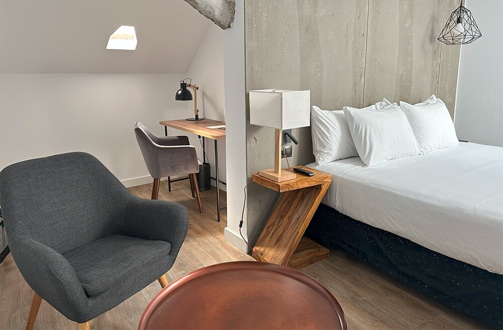 L’hôtel propose des chambres confortables au style industriel luxueux, dotées d’équipements modernes tels que du linge de maison moelleux et des articles de toilette L’Occitane. Les chambres améliorées offrent des vues pittoresques sur la rivière ou des balcons, tandis que d’autres donnent sur une cour intérieure paisible. Si vous venez en voiture, il est important de noter que l’hôtel ne dispose pas de parking sur place et que, comme il se trouve dans la vieille ville historique, il est situé dans une zone où l’accès des véhicules est limité.