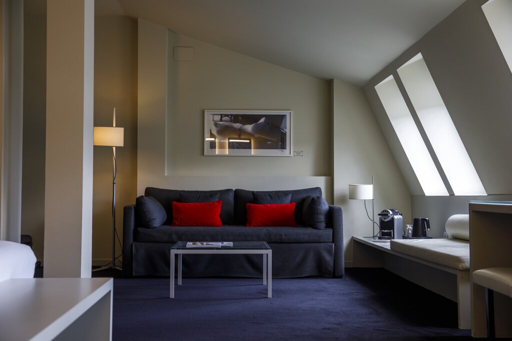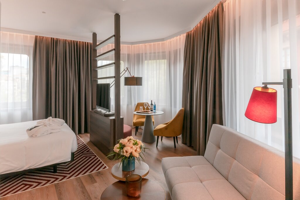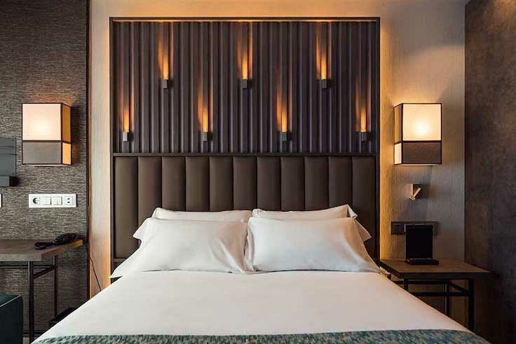 L’hôtel Gran Bilbao propose différents types de chambres, des unités standard aux suites avec jacuzzi, toutes dotées de lits confortables, de bureaux et de salles de bains spacieuses. Les peintures murales et les néons créent une atmosphère relaxante et intrigante. En tant que client, vous pouvez adopter ce que l’hôtel appelle son style de vie actif HGB, avec des recommandations d’itinéraires de jogging et de cyclisme, un espace adapté aux vélos avec des outils et des rangements, une cuisine saine conçue par un nutritionniste professionnel et des stations de recharge pour voitures électriques dans le parking souterrain.