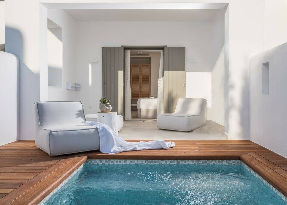 - Détendez-vous sur votre terrasse privée à l’hôtel Cavo Tagoo Mykonos.