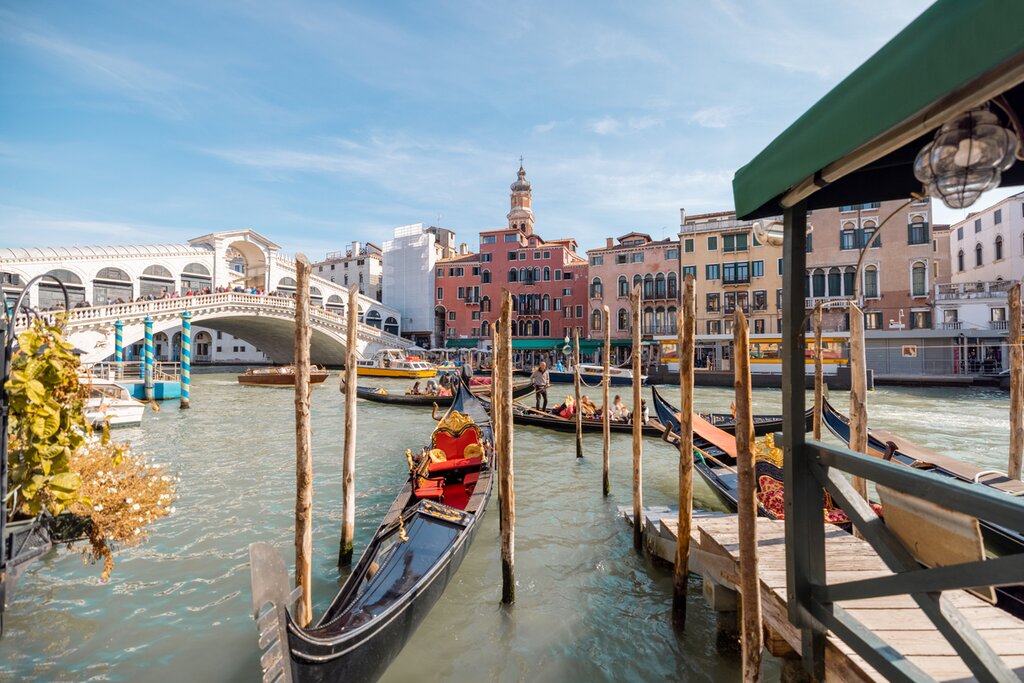 Dites au revoir à Florence et rejoignez la gare, où vous monterez à bord d’un train pour un trajet de deux heures et demie jusqu’à Venise. Avec des surnoms tels que « Reine de l’Adriatique » et « Ville d’eau », la réputation de Venise n’est plus à faire. Elle est depuis longtemps un centre commercial et culturel, s’étendant sur 117 petites îles de la lagune vénitienne marécageuse, le long de la mer Adriatique. La ville elle-même est définie par ses canaux romantiques – une attraction touristique majeure – ainsi que par un riche patrimoine culturel qui remonte à sa fondation au Ve siècle.