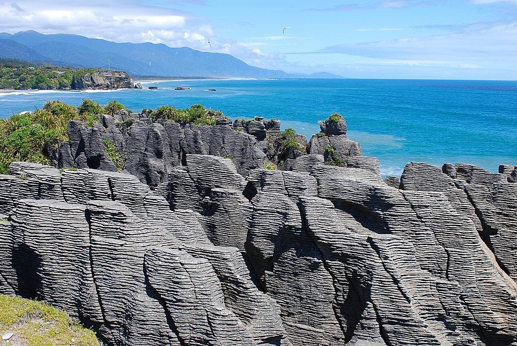 Le trajet d’une heure vers le nord jusqu’à Punakaiki vous emmène le long de la magnifique côte, avec de nombreuses possibilités d’observer le surf et les montagnes escarpées couvertes d’arbustes. Située au cœur du parc national de Paparoa, la région offre des plages, des promenades en forêt et en montagne, du canoë et des randonnées à cheval. Punakaiki est surtout connu pour ses rochers en forme de crêpes et ses trous d’air. L’exploration des célèbres rochers en forme de crêpe est plus facile à marée haute, les vagues de l’océan envoyant l’eau de mer dans les trous d’air pour créer des panaches spectaculaires.