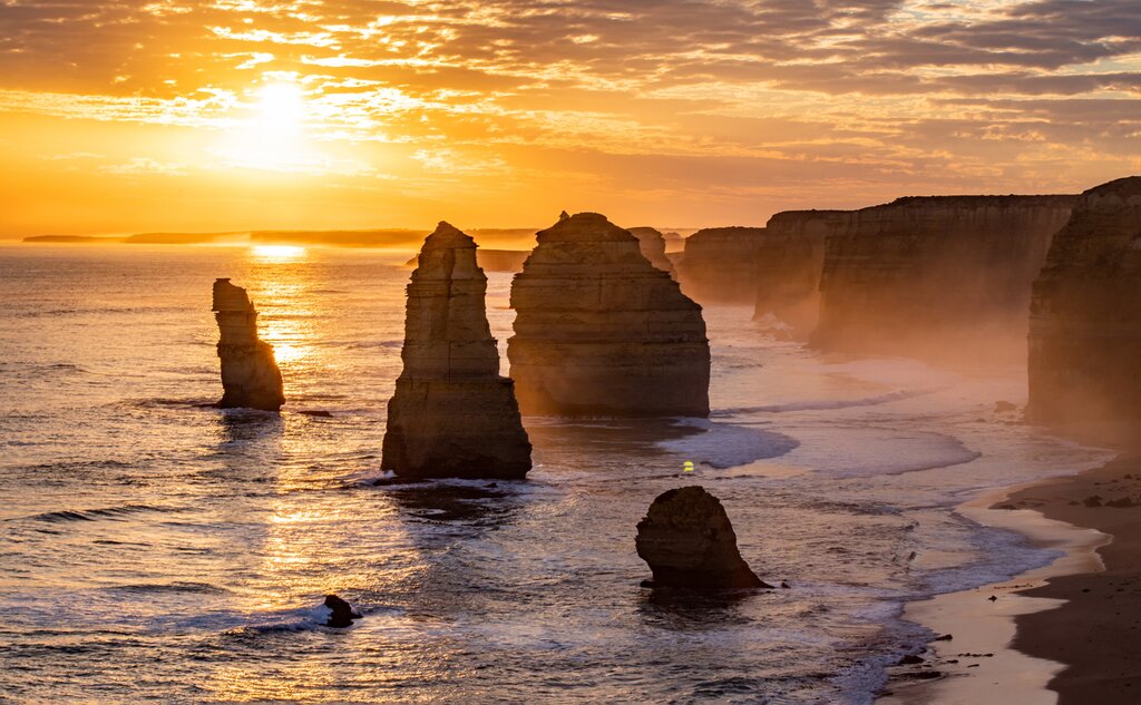 Gardez un œil sur la côte tout au long du trajet, car vous aurez probablement l’occasion d’apercevoir des baleines et des dauphins ; à l’intérieur des terres, vous pourrez même voir des échidnés et des bandicoots. Arrêtez-vous pour déjeuner à Apollo Bay, une ville balnéaire tranquille située au milieu des collines côtières ondulantes. Vous pourrez vous dégourdir les jambes lors d’une randonnée en forêt à travers les montagnes des célèbres Otway Ranges. Vous visiterez également la crique romantique de Loch Ard Gorge, puis terminerez l’aventure par le site naturel le plus incroyable de l’itinéraire : les Douze Apôtres, un groupe d’anciennes formations rocheuses calcaires émergeant de la mer.