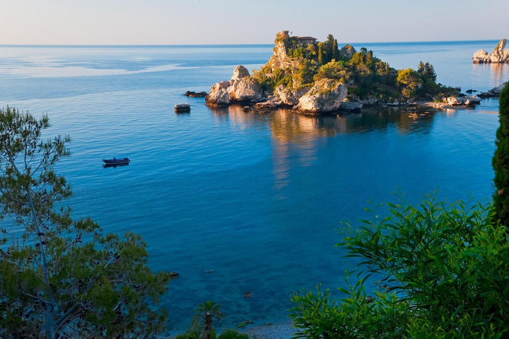 Ce matin, vous embarquerez à bord d’un bateau privé pour une excursion de deux heures et partirez à la découverte de la mer Ionienne. Vous naviguerez autour de la magnifique baie et descendrez jusqu’à la côte préservée de Giardini Naxos. Entrez dans le parc marin d’Isola Bella Taormina et plongez dans les eaux turquoise dignes d’une carte postale ou faites de la plongée avec masque et tuba. Ensuite, admirez le paysage côtier de l’est de la Sicile en vous prélassant sur le pont et en mangeant des fruits frais. Vous passerez par la charmante baie de Mazzarò et la baie des Sirènes avant de revenir à l’embarcadère de Taormine.