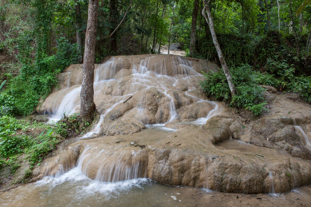 Déjeuner dans un restaurant local avant de visiter le Wat Baan Den (Grand Temple Bleu). Ce temple et monastère bouddhiste comprend 12 pagodes construites pour vénérer les 12 signes animaux du zodiaque et possède de belles salles de méditation, des statues et des quartiers d’habitation pour les moines. La dernière étape de la journée est la cascade Bua Tong (Sticky Waterfalls), une cascade à plusieurs niveaux où les dépôts de minéraux rendent la roche suffisamment adhérente pour qu’on puisse l’escalader. Ensuite, retour à Chiang Mai pour une dernière soirée dans votre opulent hôtel.