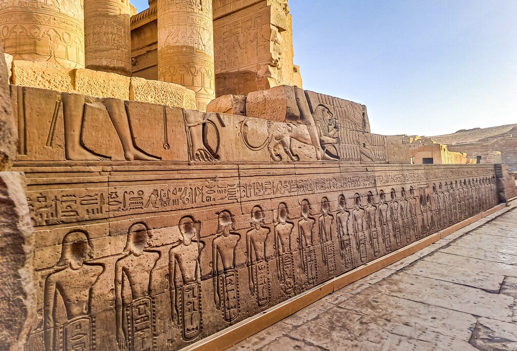 En admirant les sculptures détaillées qui recouvrent les murs du temple, vous remarquerez qu’elles illustrent les histoires mythologiques des deux dieux et dépeignent la vie quotidienne dans l’Égypte ancienne. Entrez ensuite dans le temple pour découvrir d’autres sculptures sur les murs et les colonnes représentant des instruments chirurgicaux anciens et des procédures médicales. Ne manquez pas de voir le rare nilomètre, un appareil ancien utilisé pour mesurer le niveau d’eau du Nil et prévoir les inondations. Après avoir exploré le temple, retournez au bateau pour le déjeuner et le dîner, tout en continuant votre croisière vers le nord en descendant le fleuve.