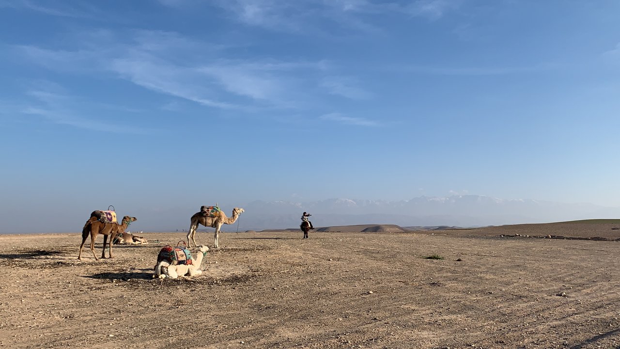 Alors que les premiers rayons du soleil colorent l’horizon d’une lueur dorée, savourez votre dernière matinée dans le calme du désert d’Agafay. Tôt ce matin, vous monterez à dos de chameau pour une douce promenade à travers les plaines arides et sablonneuses. Observez les couleurs du paysage désertique qui passent de l’ocre chaud à l’ambre riche, créant une toile de fond à couper le souffle à mesure que le soleil se lève. Tout au long de la promenade, votre guide privé bien informé partagera avec vous des informations fascinantes sur l’écosystème du désert, sa flore et sa faune, ainsi que sur l’importance culturelle des chameaux dans le patrimoine marocain.