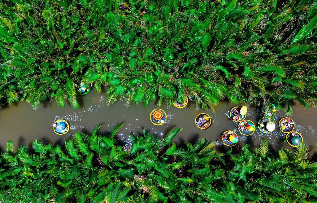 Finalement, vous arriverez près de l’embouchure de la rivière. Là, vous monterez dans un panier circulaire vietnamien (appelé thung chai) pour une promenade le long des forêts de palmiers nipa de la rivière Thu Bon. Vous pourrez même vous essayer à la pêche traditionnelle au filet. Ensuite, vous retournerez à Hoi An.