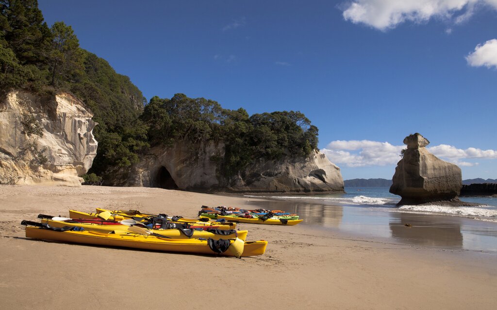- Pagayer en kayak de mer autour de Cathedral Cove sur la péninsule de Coromandel