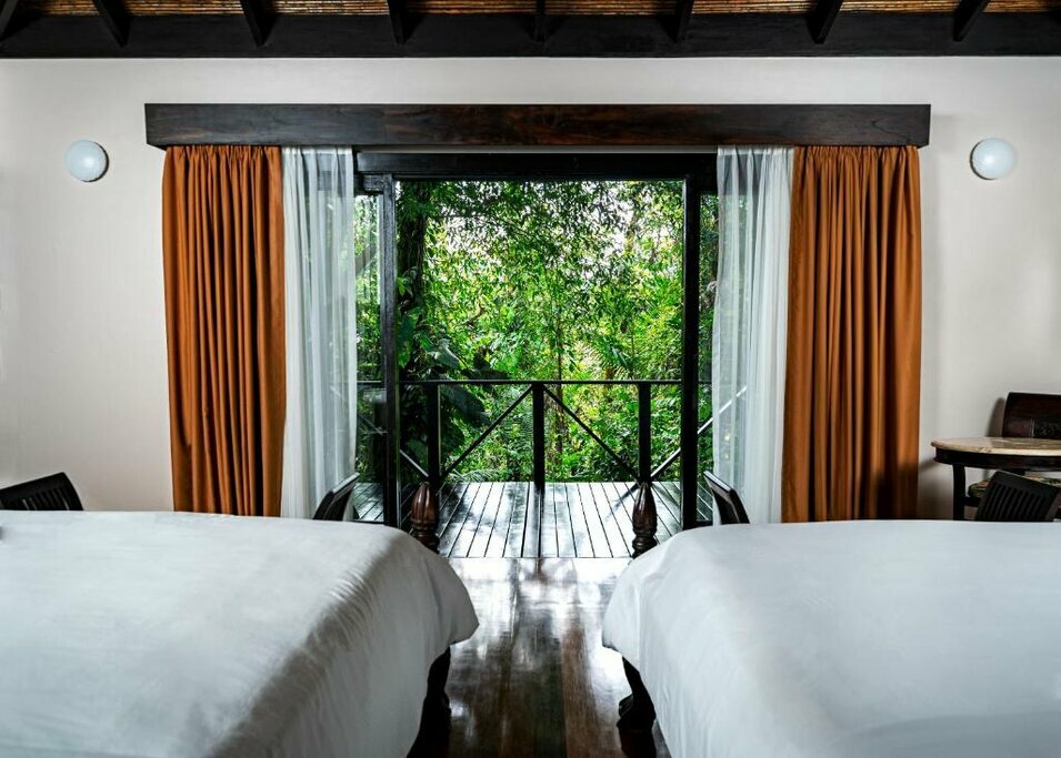 Poursuivez votre voyage à travers la campagne vallonnée du Costa Rica, parsemée de plantations de café et de canne à sucre, jusqu’au somptueux hôtel Arenal Springs Resort & Spa. Installez-vous dans votre élégante suite dotée d’une terrasse offrant une vue sur le volcan Arenal, puis plongez dans les piscines de sources chaudes de l’établissement, situées au milieu de jardins peuplés d’oiseaux.