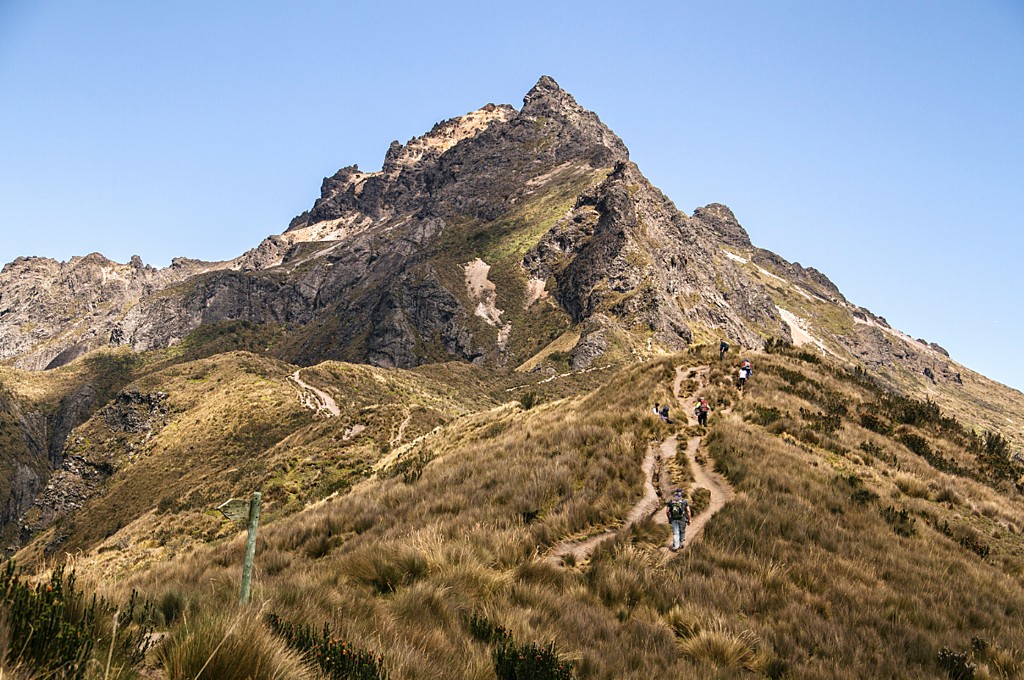Il y a une courte marche entre la station du téléphérique et le point de départ du sentier, et de là, il y a trois heures de marche jusqu’au sommet. Une grande partie de cette randonnée traverse de magnifiques écosystèmes de páramo (toundra alpine), et se termine par une escalade de rochers abrupts jusqu’au sommet, à 4 690 m d’altitude. Une fois au sommet, vous aurez une vue panoramique sur Quito et les sommets et volcans environnants. Après une pause pour prendre un en-cas et profiter de la vue, vous redescendrez à pied jusqu’à la gare et prendrez le teleférico pour retourner à Quito.
