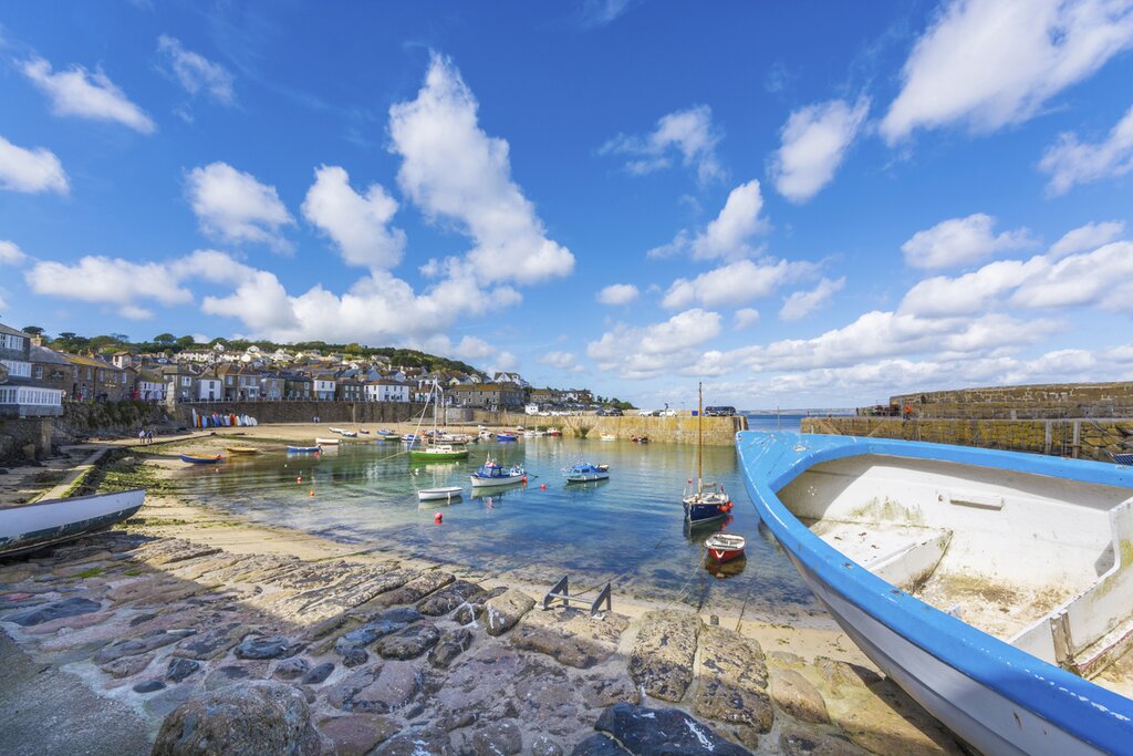 Passez du temps à visiter les jardins tropicaux et à admirer les vues panoramiques, puis, si le temps est de la partie (ou même s’il ne l’est pas !), allez faire un tour sur la plage immaculée de Pedn Vounder, à 10 minutes de route. Régulièrement décrite comme la plus belle plage de Cornouailles, vous y trouverez un sable doré immaculé et des eaux turquoises qui rappellent les Caraïbes. La ville de pêche voisine de Mousehole (prononcez Mowzul) est votre prochaine étape, où vous trouverez de nombreuses possibilités de déjeuner dans le pittoresque port du XIIIe siècle.