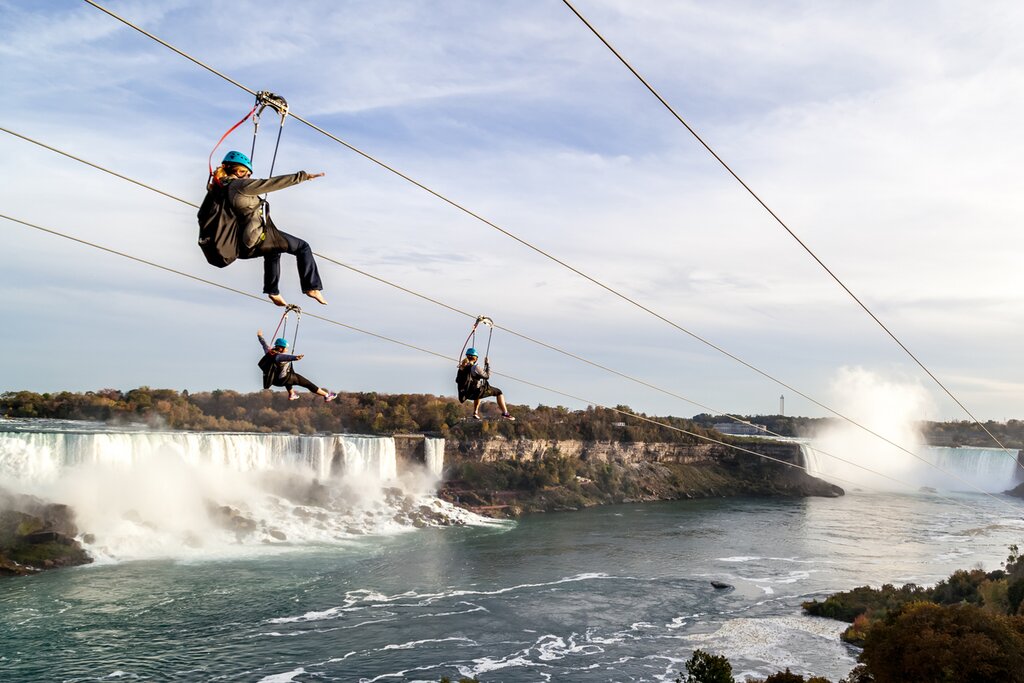 Préparez-vous à une journée pleine d’action au cours de laquelle vous verrez les chutes du Niagara depuis différents points de vue, en commençant par une tyrolienne de 670 m de long au-dessus de l’eau. Enfilez votre harnais et votre casque de sécurité, puis accrochez-vous à la tyrolienne et envolez-vous au-dessus des gorges, en profitant d’une vue plongeante sur cette merveille naturelle. Après ce tour exaltant, vous pourrez faire le Journey Behind the Falls (voyage derrière les chutes), une attraction impressionnante qui vous emmène dans les tunnels derrière les Horseshoe Falls. Descendez de 125 pieds (38 m) dans un ascenseur à grande vitesse, puis admirez les chutes depuis les terrasses d’observation extérieures, où vous serez trempé par la brume.