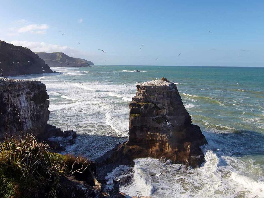 Continuez jusqu’à la côte bordée de plages de surf. Vous visiterez la colonie de fous de Bassan de Muriwai, l’un des rares sites de nidification du monde sur le continent. Située sur les falaises surplombant la mer de Tasmanie, vous bénéficierez d’une vue imprenable sur la plage et l’océan. Ensuite, vous ferez une dernière dégustation au West Brook Winery, l’un des plus anciens vignobles de Nouvelle-Zélande.