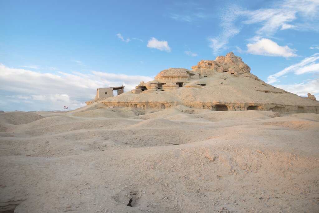Passez une autre journée à explorer l’oasis de Siwa, en commençant par le djebel al-Mawta, également connu sous le nom de « montagne des morts » en raison de sa vaste nécropole et du grand nombre de tombes creusées dans ses falaises. Suivez votre guide à travers les tombes pour découvrir les inscriptions anciennes et les fresques complexes décrivant la vie quotidienne, les divinités et les rites funéraires du peuple Siwan. Dans certaines des 3 000 tombes, on peut encore trouver de petites offrandes et des objets, comme des bijoux enterrés comme symboles de statut ou de protection, des restes de textiles utilisés pour envelopper les défunts ou des outils de momification utilisés pour préparer les corps.