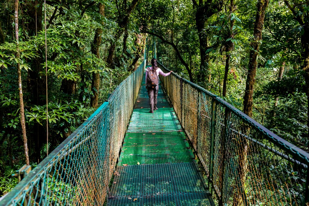 - Promenade sur un pont suspendu dans la forêt tropicale de Monteverde