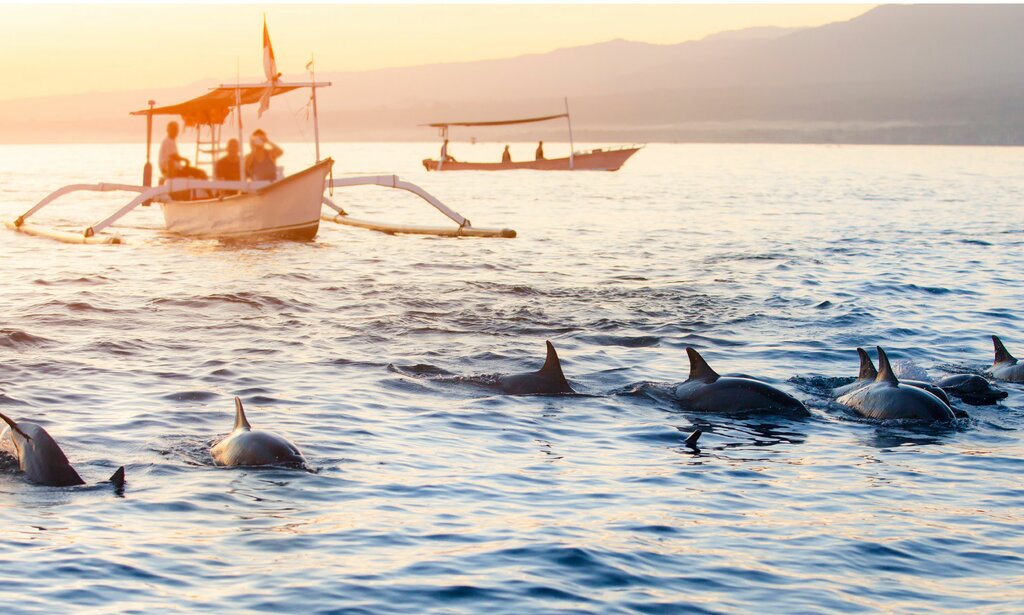Ce matin, montez à bord d’un bateau à balancier traditionnel et dirigez-vous vers les eaux entourant la plage de Lovina, à une courte distance de l’île de Menjangen. Votre visite du « terrain de jeu des dauphins » de Bali commencera avant le lever du soleil, afin de voir les dauphins en action. Observez les dauphins sauvages s’ébattre dans l’océan alors que le soleil se lève sur leur habitat naturel. L’excursion, organisée par des pêcheurs locaux, est respectueuse de l’environnement et garantit que votre présence ne nuit pas aux dauphins et ne les dérange pas.