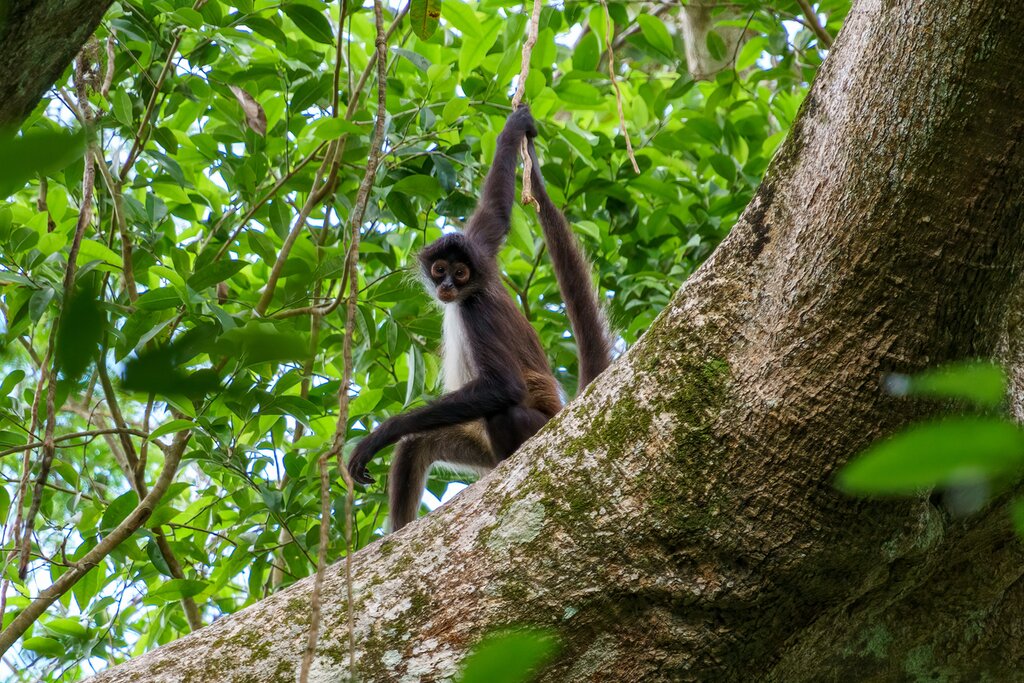 Enfin, vous arriverez à la zone archéologique. Vous y visiterez la plus haute pyramide du site, qui s’élève à 147 pieds (45 m) au-dessus de la forêt. Grimpez au sommet pour profiter de la vue incroyable sur la jungle dans une mer de verdure composée d’arbres qui s’étendent à l’infini. Au sommet, vous pourrez entendre les bruits de la jungle : trilles et bourdonnements, singes-araignées faisant bouger les branches au gré de leurs déplacements, ou piverts jouant leur mélodie en bois à la recherche d’insectes.