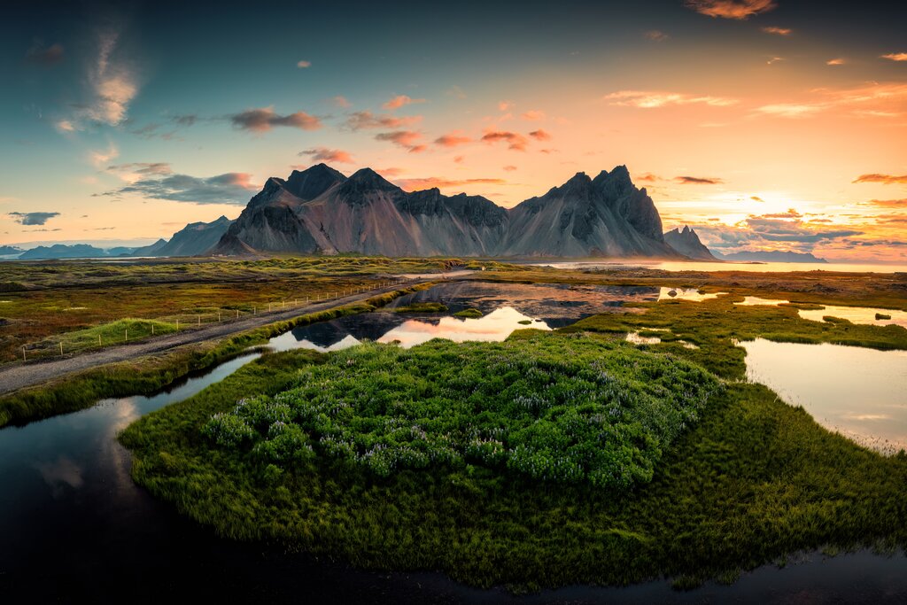 Ce matin, abandonnez les lagunes glacées et les glaciers gelés pour la péninsule de Stokksnes, d’une beauté saisissante. Le paysage monte d’un cran ou deux lorsque votre chauffeur serpente le long de la Ring Road à travers d’étroits fjords bordés de montagnes escarpées qui se jettent dans la mer. Dans le confort de votre Jeep modifiée, vous passerez plusieurs heures à explorer le promontoire pittoresque et à suivre les montagnes Vestrahorn qui se profilent au-dessus des plages de sable noir. Vous y trouverez également un patrimoine culturel et historique, avec un ancien village viking abritant des bâtiments traditionnels en torchis et les vestiges d’une base de l’armée britannique pendant la Seconde Guerre mondiale.