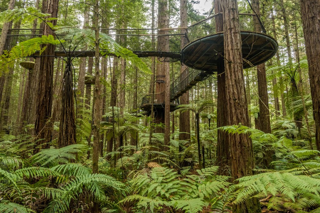 La Nouvelle-Zélande est connue pour ses aventures qui font monter l’adrénaline, et aujourd’hui vous plongerez directement dans ces activités à la recherche de sensations fortes lors de l’excursion dans la forêt de Rotorua (Rotorua Forest Canopy Tour). Faites de la tyrolienne à travers les arbres et découvrez la flore et la faune denses d’une ancienne forêt de séquoias, en traversant des ponts tournants et en empruntant des escaliers qui ne mènent nulle part, au cours d’une excursion de trois heures. Votre guide de confiance vous conduira jusqu’aux plates-formes d’arbres qui relient les vallées par la tyrolienne, vous faisant profiter de ses connaissances sur cet écosystème unique tout au long du parcours.