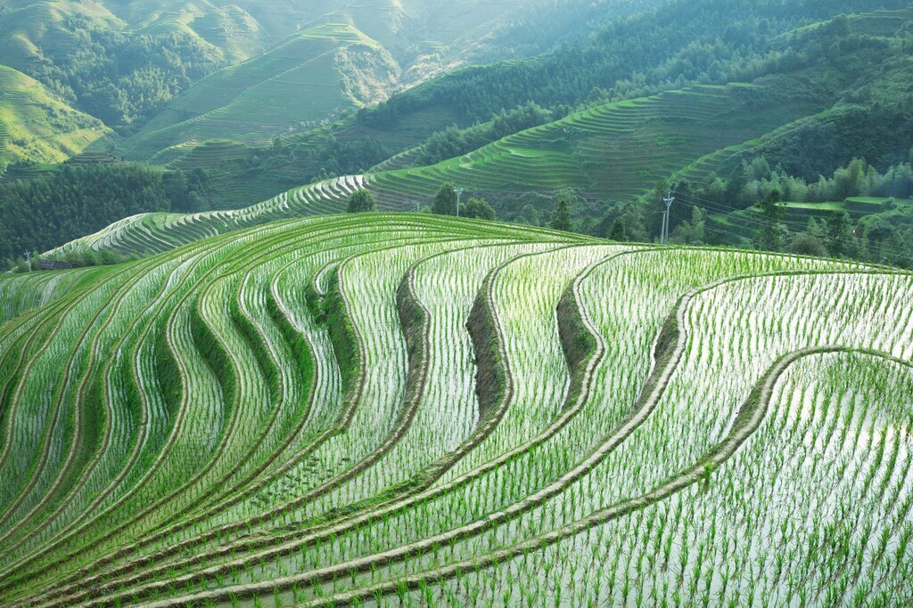 Un trajet pittoresque de deux heures le long de l’autoroute vous mènera de Yangshuo à Longji, où vous aurez une vue épique sur les rizières en terrasses de Longji. Également connues sous le nom de « rizières en terrasses de l’épine dorsale du dragon », elles doivent ce surnom aux terrasses qui recouvrent les collines verdoyantes et qui, vues de loin, ressemblent aux écailles d’un grand dragon.