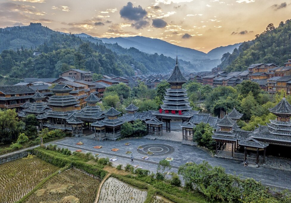 Transfert à la gare ce matin et embarquement à bord d’un train pour un trajet de 50 minutes vers le nord-ouest jusqu’à la gare de Congjiang, près du village de Zhaoxing. Ce village, où vit la minorité ethnique Dong, est réputé pour son architecture traditionnelle bien préservée, qui comprend d’imposantes tours de tambour, des maisons historiques en bois et de magnifiques ponts contre le vent et la pluie. Après avoir pris possession de votre logement, vous partirez pour une excursion d’une demi-journée à la découverte de la riche culture du peuple Dong. Votre guide et vous commencerez par la porte du village, d’où vous pourrez monter à pied jusqu’à un pont d’observation qui vous offrira une vue panoramique du village.
