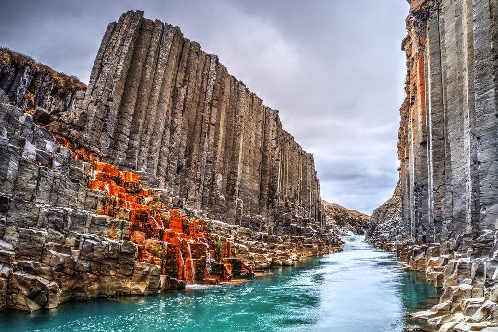 Profitez d’un petit-déjeuner relaxant et d’une dernière promenade sur les rives du lac Lagarfljót, puis récupérez vos bagages et retrouvez votre chauffeur pour la prochaine étape de votre voyage. Votre destination est le lac Mývatn, connu pour la diversité de ses paysages volcaniques et géothermiques. Vous commencerez par remonter la vallée de Jökuldalur vers le nord jusqu’au canyon de Stuðlagil, créé par une puissante rivière qui s’est frayé un chemin depuis les hauts plateaux au nord de l’île. Les imposantes colonnes de basalte du canyon qui plongent dans les eaux glaciaires d’un bleu jade, longues de 150 km, sont l’une des plus belles merveilles naturelles du pays.