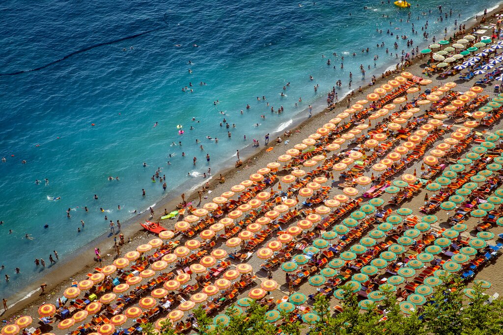 Aujourd’hui, remplacez les collines de Toscane par la péninsule sorrentine. Montez à bord d’un train à grande vitesse de trois heures vers le sud, en direction de Naples. À la gare de Naples, un chauffeur privé vous attendra pour vous transférer à votre hébergement à Sorrente, à environ 45 minutes de route. Posez vos valises, prenez une serviette et partez à la découverte des plages. Les plages de la côte sud de Sorrente comptent parmi les plus belles d’Italie. Près de Sorrente, les baies sont plus rocheuses que sur la majeure partie de la côte amalfitaine, mais cela signifie aussi qu’il y a moins de monde.