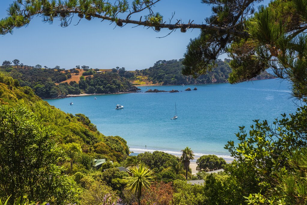 Kia ora ! Vous avez atterri sur l’île du Nord de la Nouvelle-Zélande, où votre lune de miel, riche en culture et en gastronomie, commence à Auckland, la plus grande ville du pays. Avec deux ports animés et plus de 500 000 voiliers et yachts, il est facile de comprendre pourquoi Auckland est surnommée la « ville des voiles ». Un chauffeur privé vous attendra pour vous transférer à votre hébergement. Déposez vos bagages et dirigez-vous directement vers le terminal des ferries pour prendre le bateau à destination de l’île de Waiheke, un paradis naturel composé de plages, de forêts, d’oliveraies et de vignobles.