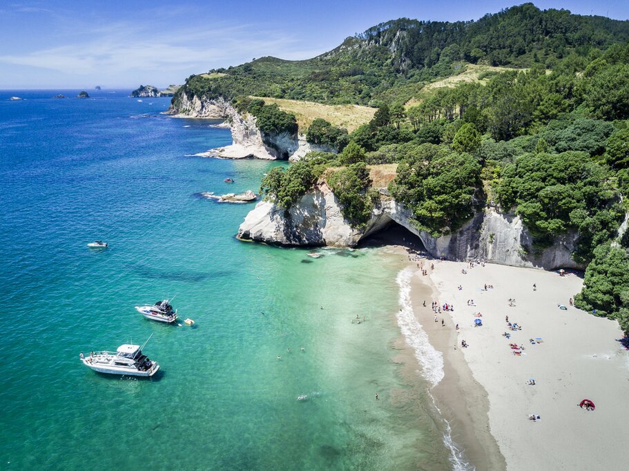 - Randonnée jusqu’à Cathedral Cove, une plage isolée avec des grottes calcaires spectaculaires.
