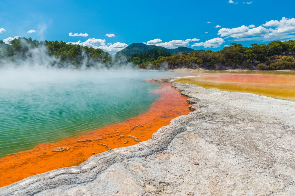 Prenez le volant et partez trois heures au sud pour Rotorua. Située dans la ceinture de feu du Pacifique, Rotorua est une merveille d’activité géothermique, avec ses bassins de boue bouillante, ses geysers fumants et ses sources d’eau chaude naturelles, parfaites pour se baigner et se détendre. Rotorua est également un endroit idéal pour découvrir la fascinante culture, l’hospitalité et la cuisine Māori de la Nouvelle-Zélande. Commencez par la porte de l’enfer pour vous imprégner de boue géothermique et d’eaux sulfureuses acides. Sentez les propriétés curatives que les Māori locaux utilisent depuis plus de 800 ans tandis que la boue chaude ouvre et nettoie vos pores.