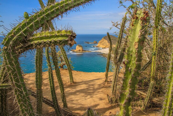 Ce matin, vous en apprendrez davantage sur la culture équatorienne ancienne grâce à une excursion d’une journée dans le parc national de Machalilla. La destination d’aujourd’hui est Los Frailes (Les Frères), une série de trois plages étonnantes reliées par un sentier de randonnée. Commencez par une courte randonnée le long d’un sentier naturel jusqu’à la plage de sable noir de La Tortuguita, qui offre un point de vue panoramique sur la côte. Sur le chemin, gardez un œil sur la faune abondante de la région : les enfants peuvent apercevoir des oiseaux exotiques comme les fous à pieds bleus, et les eaux au large sont connues pour leurs nombreuses populations de baleines.