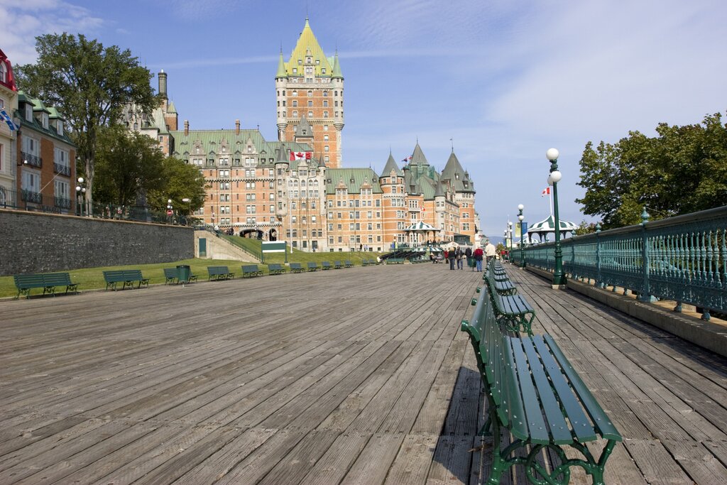 Laissez la capitale du Canada derrière vous et dirigez-vous plus à l’est vers le Québec et sa capitale, la ville de Québec, au cours d’un voyage en train de six heures à travers l’est du Canada. Vous verrez la métropole animée faire place aux collines vallonnées, aux rivières sinueuses et aux petits villages de la campagne. Vous traverserez des villes historiques comme Montebello et Trois-Rivières, alors gardez l’œil ouvert pour découvrir des sites célèbres comme le Fairmont Le Château Montebello. À votre arrivée, installez-vous à l’hôtel, puis partez pour une visite guidée du Vieux-Québec, quartier historique classé par l’UNESCO.