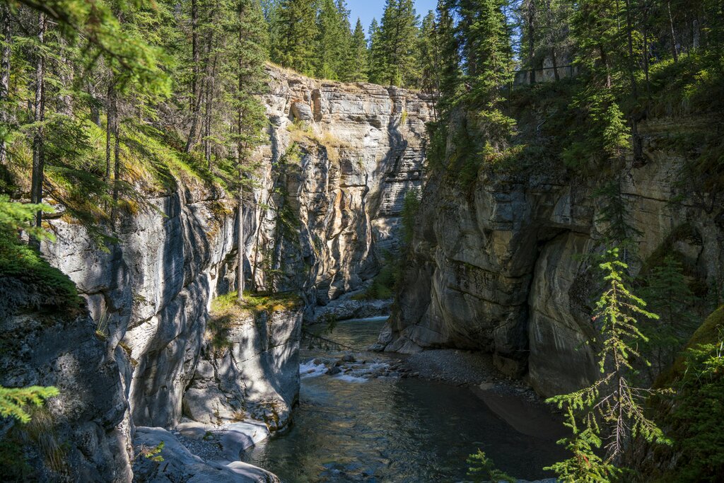 Rejoignez votre guide pour une visite du parc national de Jasper ce matin, en commençant par une randonnée de 30 minutes à travers le luxuriant canyon de Maligne. Admirez la grandeur du canyon, sculpté au fil des siècles par les eaux impétueuses de la rivière Maligne. Admirez de près les formations rocheuses et les chutes d’eau spectaculaires qui bordent le canyon avant de continuer jusqu’au lac Medicine, qui disparaît pendant l’été. Découvrez les processus géologiques à l’origine de cette disparition et prenez quelques photos du paysage naturel lors de cet arrêt rapide de 10 minutes.
